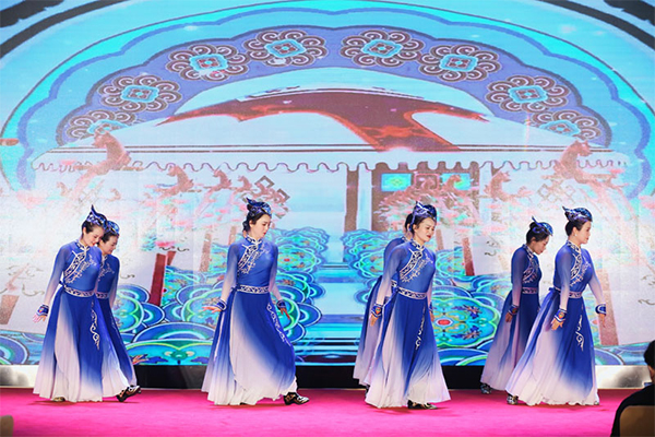 接下來是舞蹈《蒙族舞-藍(lán)色的風(fēng)》,這個節(jié)目是2022年湖北省省運會健身舞蹈類項目孝感代表隊參賽獲獎作品之一,我們行政部謝主任也是孝感代表隊隊員之一。我們邀請到了部分參賽隊員,她們是來自孝高、實小的老師們和舞蹈協(xié)會的老師們。
